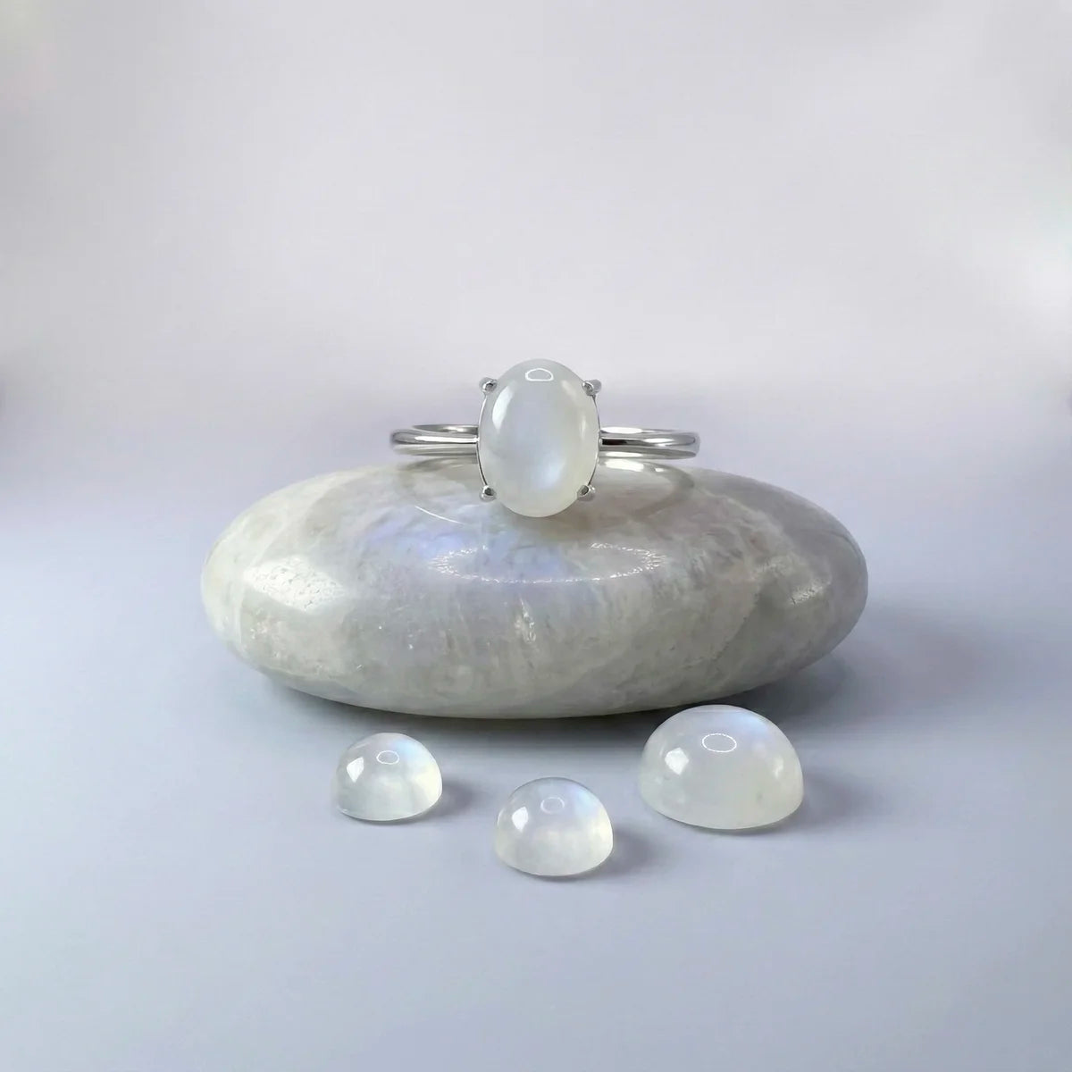 Bague en argent 925 sertie d’une pierre de lune cabochon