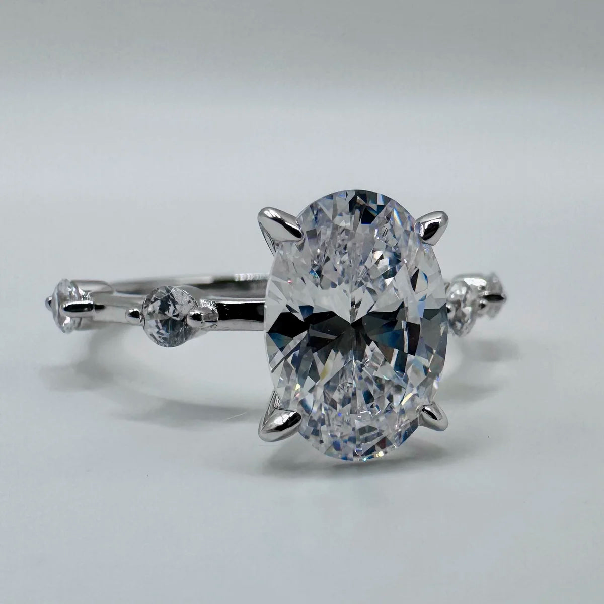 Nous utilisons un Oxyde de Zirconium de qualité supérieure, facetté pour reproduire la dispersion de lumière (le "feu") du diamant. À l'œil nu, il offre cet éclat prestigieux et cette blancheur immaculée tant recherchés.