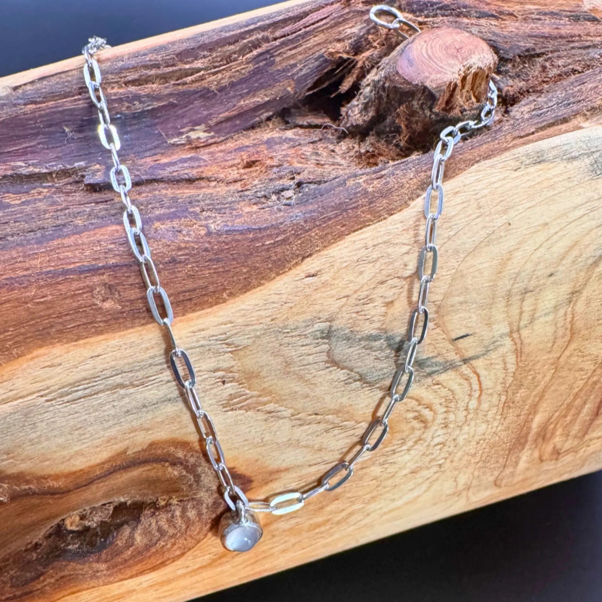 Bracelet en argent serti d'une pierre de lune